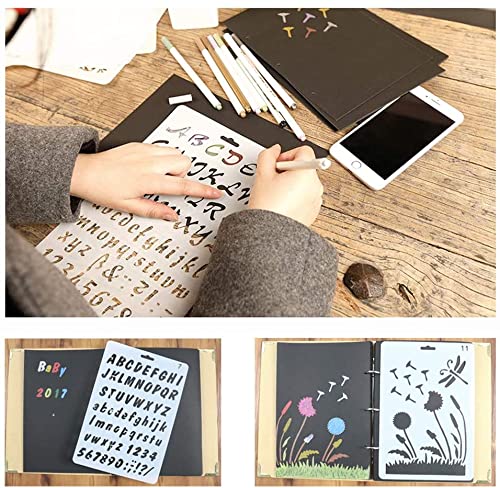 12 pezzi stencil per artigianato riutilizzabile, stencil per pittura per artigianato riutilizzabile pirografia stencil modelli set per diario / quaderno / progetti di artigianato fai-da-te