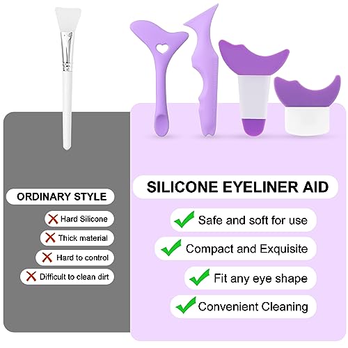 4 Pezzi Stencil per Eyeliner Occhi, Silicone Aiuto per Eyeliner con Punta Alata Applicatore per Mascara per Principianti Trucco Strumento per Sopracciglio Ciglia Linea Delle Labbra (Viola)