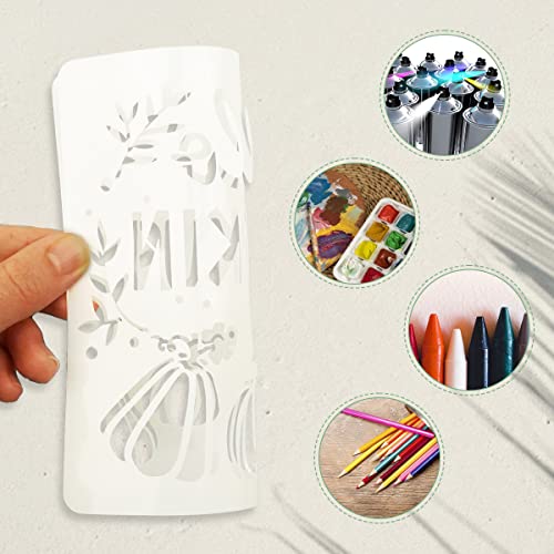 【Materiale di Alta Qualità】: pittura stencil è realizzato in materiale PE di alta qualità, sono tagliati al laser, senza bordi taglienti, sottili e resistenti. Non facile da rompere o deformare, lavabile e riutilizzabile, facile da pulire, non facile da sbiadire o ruggine, adatto per l'uso a lungo termine.