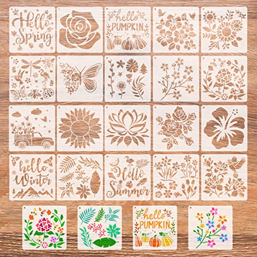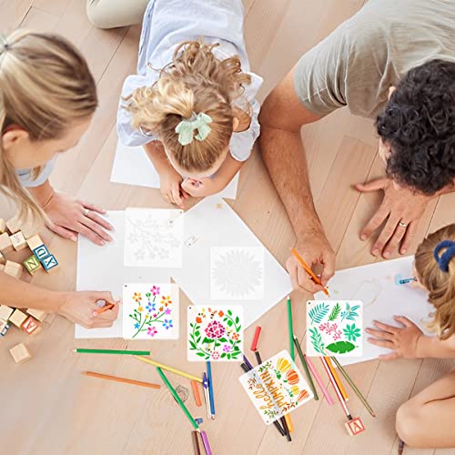 20 Pezzi Stencil Fiori, Riutilizzabili Stencil per Pittura, Modelli Pittura Modelli Vintage Stencil, Stampi per Pittura per Decorazione Murale Artigianato Artistico Mobili Legno 15 x 15 cm