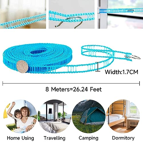 3 pezzi Stendibiancheria in nylon 8M Filo Stendibiancheria Antiscivolo con 12 pezzi Mollette in Acciaio Inox Filo per Bucato Antiscivolo per Campeggio Esterno Interno Viaggio (Verde, Rosa, Blu)