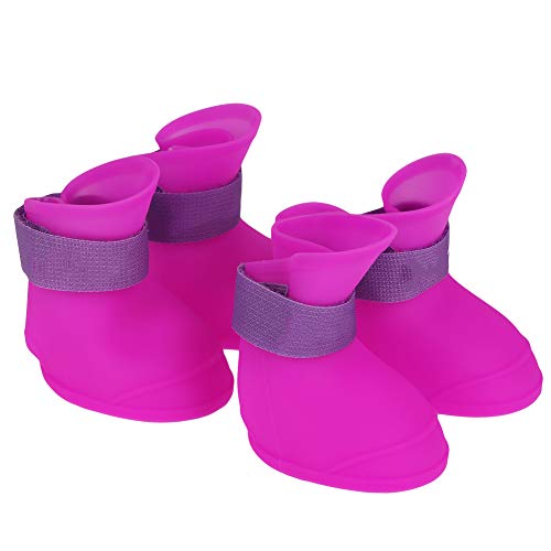 4 pezzi stivali per cani da compagnia, cucciolo di cane da compagnia in silicone alla moda cane da compagnia carino stivali impermeabili antiscivolo scarpe da pioggia protettive antiscivolo(L Purple)
