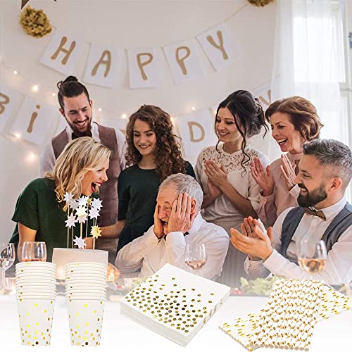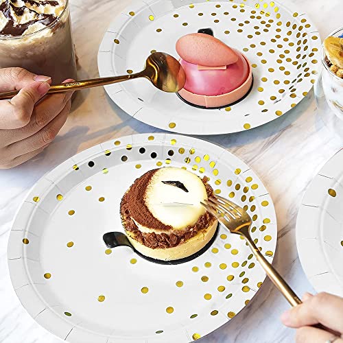 【Ampiamente Usato】 Il set di stoviglie per feste a pois dorati è adatto per molte occasioni, come feste di compleanno, matrimoni, addio al nubilato, fidanzamento, Natale, feste di anniversario, baby shower, barbecue, ecc. Aggiungi un tocco moderno ed elegante a qualsiasi festa .