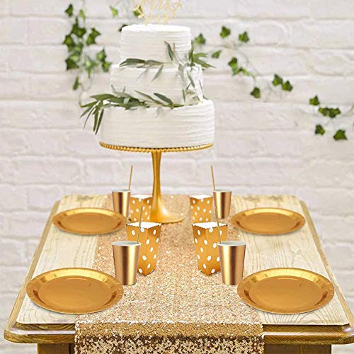 83 Pezzi Stoviglie Per Feste Oro,Stoviglie Dorate Usa e Getta,Piatti Di Carta Festa Paglia Coppa Bicchiere Carta Tovagliolo,Per Feste, Matrimoni, Anniversari,Compleanni (16 Ospiti)