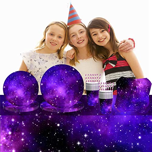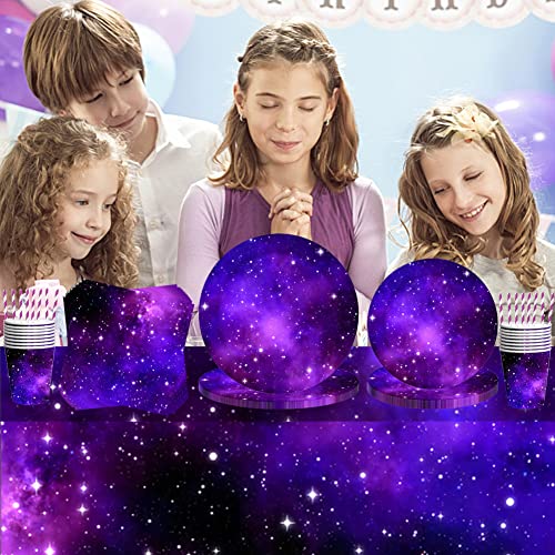 85 Pezzi Set Di Stoviglie Per Feste Galaxy, Include Piatti Di Carta, Tazze, Fazzoletti, Tovaglie, Cannucce,Stoviglie Galassia Stellata Viola,Buono Per La Decorazione Della Festa Di Compleanno