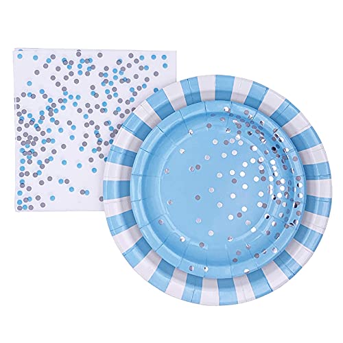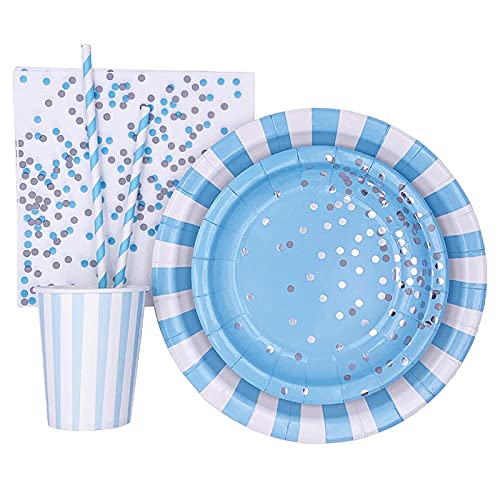 128 Pezzi Stoviglie Per Feste,Stoviglie Per Feste a Pois,Set Di Stoviglie Forniture Per Feste,Con Tovagliolo Piatti Coppa Paglia Forchette,For Matrimoni,Anniversari,Compleanni (Blu)