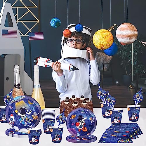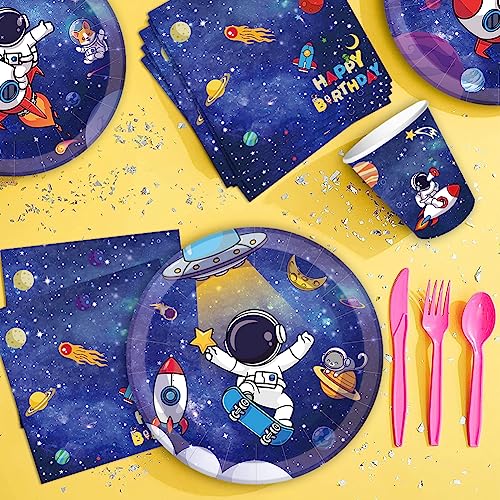 88 Pezzi Stoviglie per Feste Spazio, Forniture per Feste Spazio, Feste Spazio Stoviglie Set, Include Piatto, Tazze, Tovaglioli, per Decorazioni per Feste di Compleanno Spazio