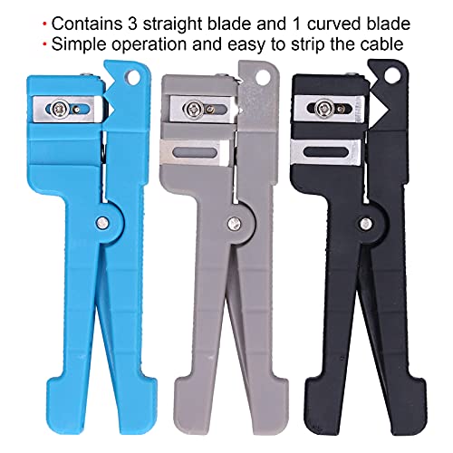 Crimpatrice Per Cavo Coassiale: Inclusa la pinza per cavo coassiale da 3 pezzi, ogni strumento ha 3 lame diritte e 1 lama curva, adatte per spelare diverse guaine di cavi.
