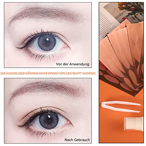 3 MISURE - Riceverai 3 misure di strisce per palpebre cadenti, vale a dire 2,5 x 0,3 cm, 2,8 x 0,4 cm e 2,8 x 0,6 cm, 264 pezzi in totale, con un flacone spray, una pinzetta e un'asta a forchetta.