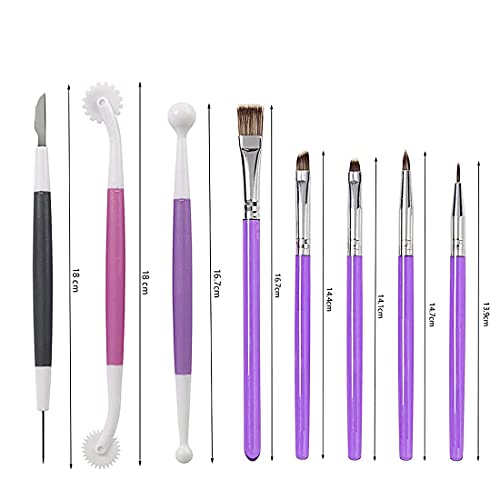 tre strumenti a doppia testa facilitano le forme, i dettagli e il taglio del fondente e vengono utilizzati per modellare, modellare e formare la pasta di zucchero e una comoda maniglia garantisce un funzionamento ergonomicamente stabile.