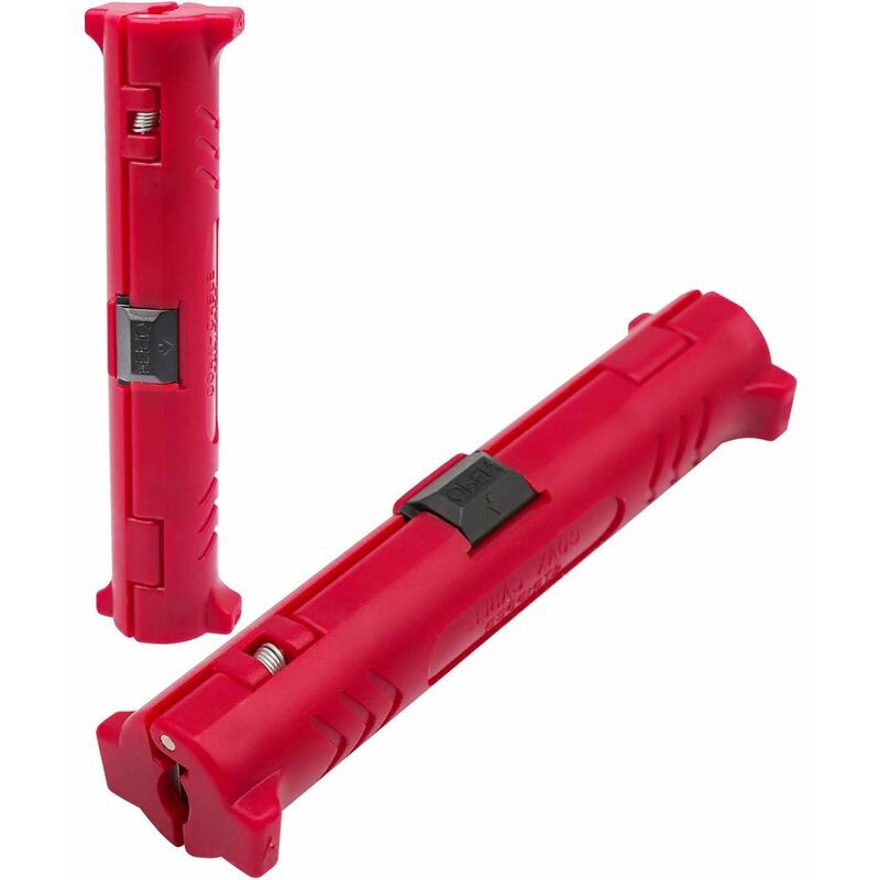 Pinza spelafili universale per cavi coassiali, strumento molto utile per spelare tutti i comuni cavi coassiali, ad es. per l'installazione di cavi satellitari o video Pinza a crimpare, guaina per cavi, separazione dell'isolamento, lavorazione dei cavi rapida e pulita, nessun danno, adatto a tutti i comuni diametri di cavo 4 lame da taglio ( 2 per lato) - lato A per guaina esterna, lato B per isolamento interno. Pulisci rapidamente il trattamento dei cavi senza danneggiarli. Adatto a tutti i comuni diametri di cavo Le pinze spelafili hanno una lama all'estremità. Lato A: l'estremità con il diametro maggiore Lato B: l'estremità con il diametro minore Contenuto: 2 spelafili coassiali universali < b>Caratteristiche: Strumento universale per spelare e smontare tutti i comuni cavi tondi, cavi resistenti all'umidità, cavi coassiali e cavi dati, ad es. doppino intrecciato. Estremità rastremate dell'utensile per una migliore accessibilità e uno smontaggio salvaspazio;