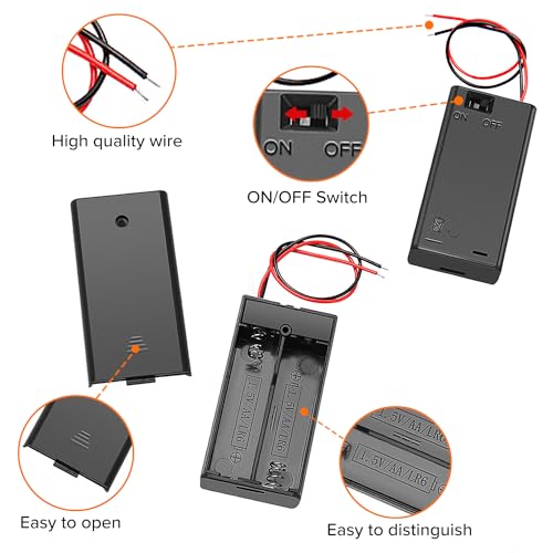 Struttura pratica: tutte le custodie portabatterie AA con conduttori, sono estremità del filo stagnato. Il design a due fili nero e rosso è ottimo per saldare e collegare facilmente. Con l'interruttore ON/OFF, è possibile interrompere l'alimentazione quando non è in uso.