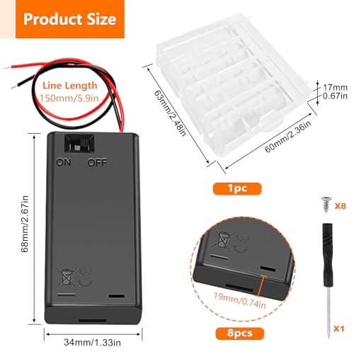 La confezione include: 8 pezzi 2 portabatterie AA con cavi, 1 pezzi Scatola di immagazzinaggio della batteria in plastica, 8 pezzi viti e 1 pezzicacciavite.