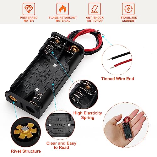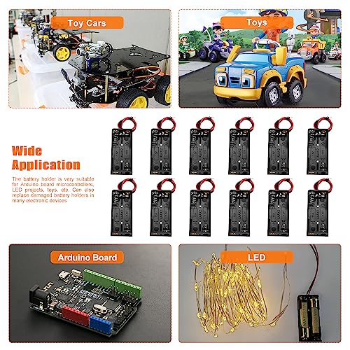 12 Pezzi 2 AAA Supporto Batteria, KUOQIY 2 x 1.5V AAA Portabatterie con Cavi, con 2 Pezzi Custodia Batteria in Plastica e Cacciaviti e Viti