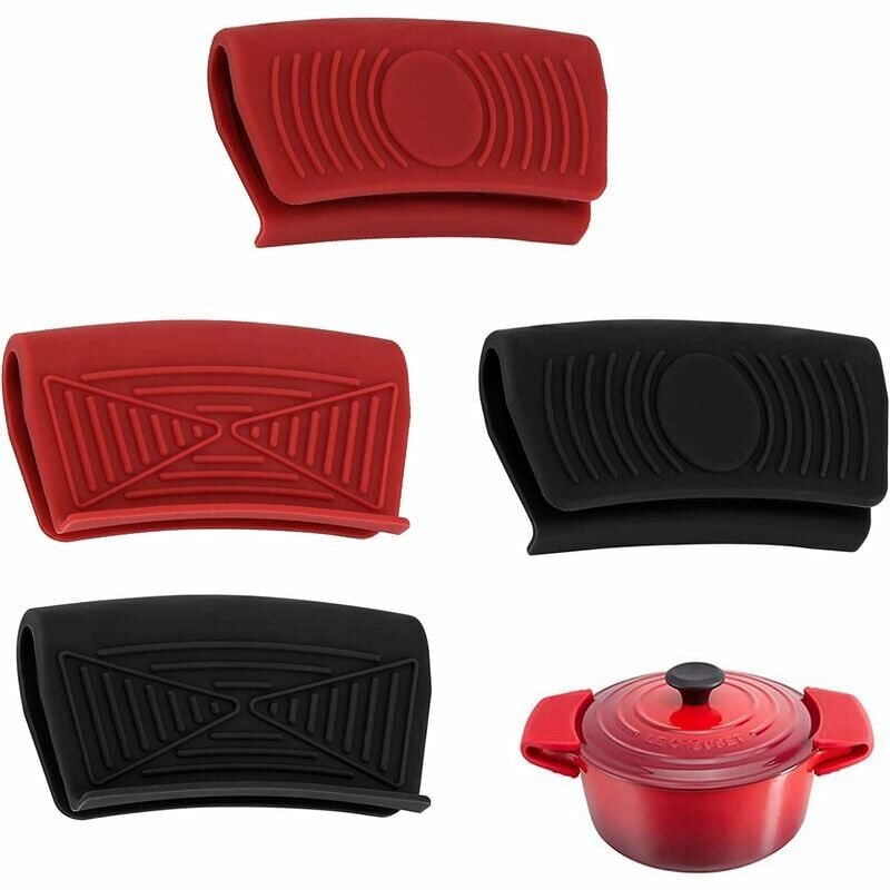 Contenuto della confezione: riceverai 4 pezzi di supporto per impugnatura in silicone, due in nero e due in rosso. Alta qualità: il supporto per impugnatura in silicone è realizzato in gel di silice. È resistente e ha un buon isolamento e flessibilità. Nota: questo non deve essere utilizzato a temperature superiori a 230 gradi. Dettagli sulle dimensioni del supporto Ogni supporto per manico in silicone misura 8x4 cm/3,15x1,6, dimensioni adatte per varie pentole, padelle in ghisa, padelle, piatti, ecc. Design antiscivolo: presenta una superficie irregolare per fornire più finzione, con un punto incassato per tenerlo con il pollice. Può essere facilmente avvolto su padelle e pentole calde. Applicazione: il supporto per manico in silicone può proteggere le mani dal calore o dai danni del ferro, adatto per la maggior parte delle pentole, padelle per evitare ustioni. < p> Specifiche: Materiale: gel di silice Colore: 2 in nero e 2 in rosso Quantità: 4 pezzi< /p> Peso lordo: 100 g / 3,53