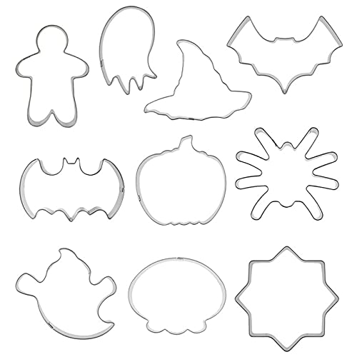 10 Pezzi Tagliabiscotti di Halloween in Acciaio Inossidabile, Set Tagliabiscotti di Halloween, Tagliabiscotti di Halloween, per Biscotti di Halloween, Panini, Frutta, pane, Formaggio(Argento)