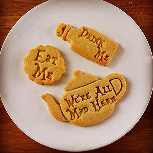 3 Pezzi Tagliabiscotti Mangiami, Interessante Tagliabiscotti, Stampo Per Biscotti A Tema Alice Fantasy Nel Paese Delle Meraviglie, Formine Set Da Forno Per Cucina Fai Da Te Torta Biscotto Dessert