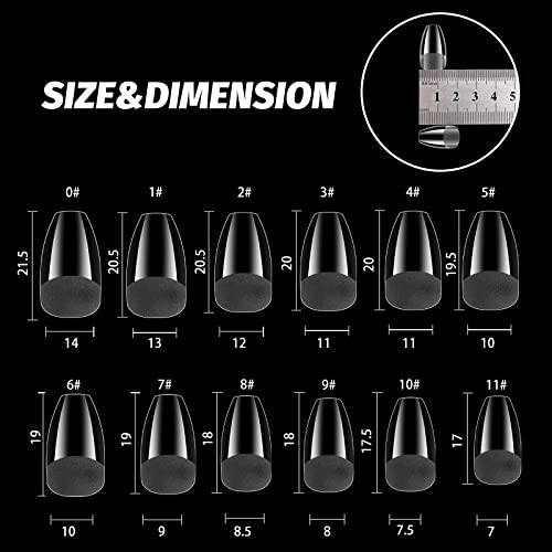 240 Pezzi 12 Taglie Unghie Finte, Unghie Finte in Gel, Coffin Artificiale Tip Unghie Copertura Completa Unghie per Manicure da Salone, Trapezio Corto