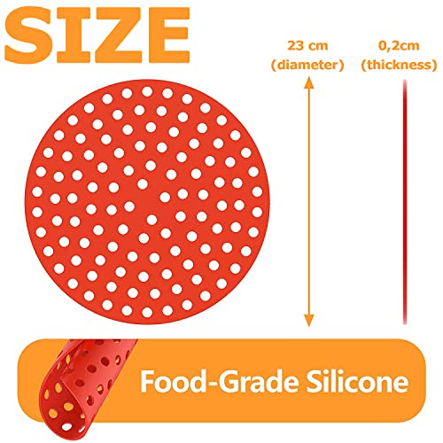 NK 2 Pezzi Tappetino Friggitrice ad Aria Riutilizzabili (Carta Forno Silicone) - AirFryer Liner, Antiaderente, Accessori per Friggitrice senza Olio, 1 Unità Rossa + 1 Nera (Rotondo, 22.5cm)