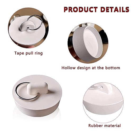 5 Pezzi Tappi Lavello Gomma, Tappi Scarico Bagno Tappo Lavello, Tappi Per Scarico Lavandino Con Gancio Facile Sostituire Bianco Anello Appeso per Vasca Bagno Cucina e Bagno