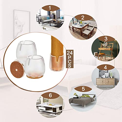 24 Pezzi Tappi Sedie Silicone 20-30 mm Feltrini per Sedie Rotondi Piedini per Sedie Arredamento Copri Piedi Sedie Cancellazione del Rumore e Antiscivolo Tappetini Antigraffio per Pavimenti