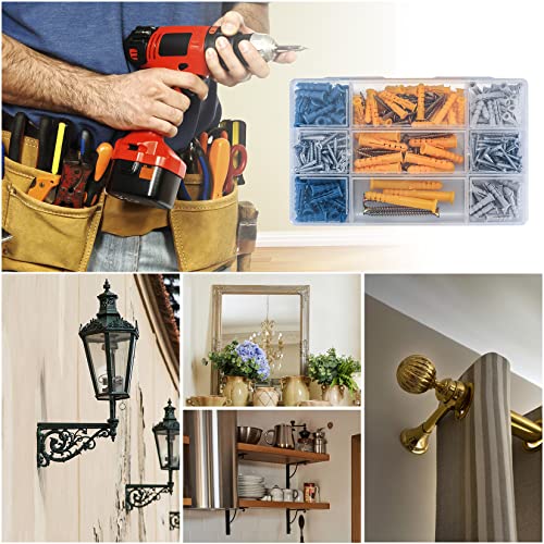 240 Pezzi Tasselli con Vite Assortiti, Viti e Tasselli ad Espansione per Legno, Viti Autofilettanti e Tasselli a Muro in Plastica, Tasselli per Fissaggio Cartongesso, Cemento Viti Autoperforanti