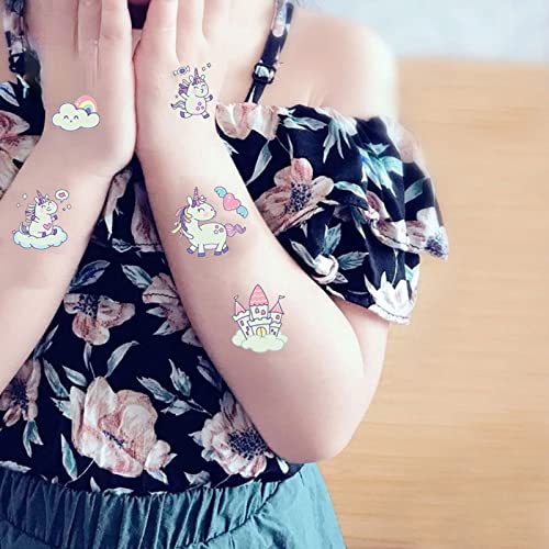 Modelli ricchi: offriamo una varietà di squisiti tatuaggi di unicorno incandescente dei cartoni animati. I modelli possono essere combinati liberamente e combinati con modelli squisiti che sono molto amati dai bambini di tutte le età.