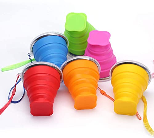 6 pezzi Tazza da Viaggio Pieghevole Multicolore Tazza in Silicone Pieghevole Portabile Coppa Pieghevole con Coperchio per Escursionismo Picnic Camping Attività all'aperto