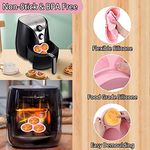 2 Pezzi Teglie Per Friggitrice Ad Aria, Teglia Per Muffin In Silicone, 3 Cavità Riutilizzabile Per Friggitrice Ad Aria, Air Fryer Accessories, Padella Silicone Per Friggitrice Ad Aria Per La Cottura