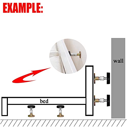 Ampia gamma di usi: questo strumento anti-vibrazione del telaio del letto filettato regolabile può essere utilizzato in molti luoghi, a condizione che il centro di gravità sia instabile o facile da scuotere l'oggetto può essere utilizzato. Come letto, armadio, sedia, divano e altri oggetti usati contro il muro.