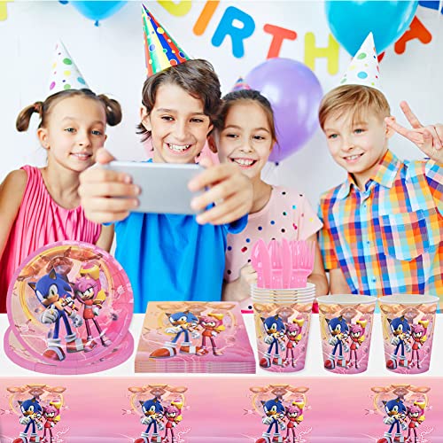 71 Pezzi Tema Stoviglie, Set di stoviglie per compleanno per bambini di Hedgehog di Sonic, motivo Riccio con piatti, tazze, tovaglie, Tavola Accessori, decorazione per compleanno, 10 persone