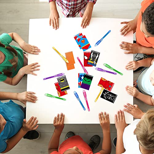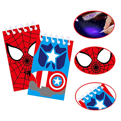 24 pezzi tema supereroe regali di compleanno per ragazzi e ragazze,12 penne uv e 12 quaderni,bomboniere per feste di compleanno per bambini, giocattoli in cotone e pinata