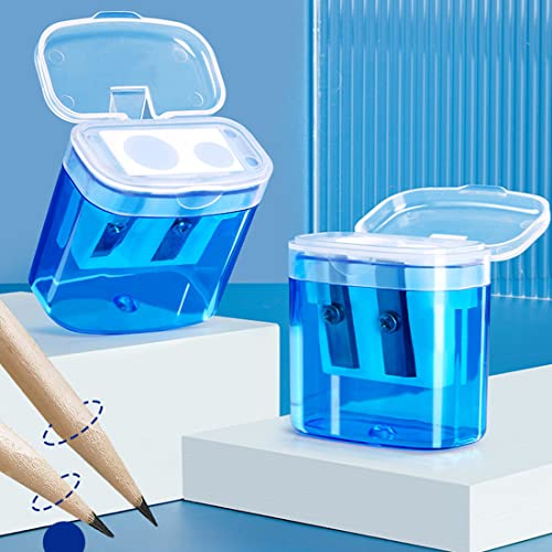 1 Pezzi Tempera matite,Temperamatite a doppio foro,Temperamatite bambini,Temperino per matite trucco,Temperamatite portatile,Per Diversi Tipi Matite Studenti Scuola Ufficio Viaggi(Blu)