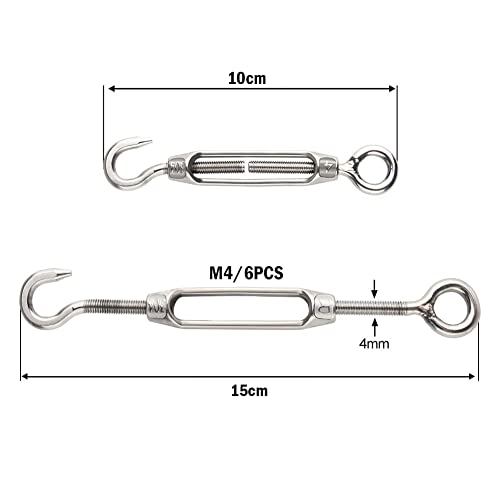 6 Pezzi M4 Tenditore Acciaio Inox 304 Tenditore Filo Regolabile Tenditori Gancio e Occhiello per Cavi in Acciaio Tenditori per Funi