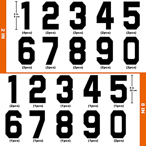 Appicazione: i numeri termoadesivi sono buone decorazioni per magliette, cappelli, borse, cuscini, pantaloni, jeans e altri tessuti. Possono essere applicati anche a magliette di atleti o squadre come numero di calcio, numeri di baseball, numeri di basket, consentendo ai membri del team di avere i propri numeri specifici. Puoi anche personalizzare il tuo abbigliamento, accessori e progetti di arredamento per la casa.