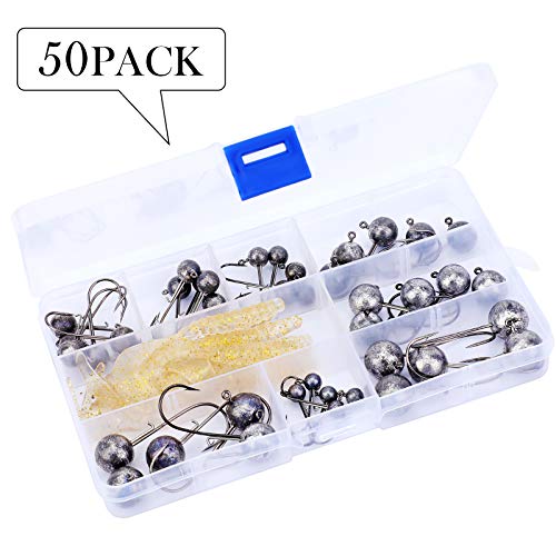 40 Pezzi Teste Piombate Gancio Ami da Pesca per Esche Morbide 2g 3.5g 5g 7g 10g 14g 17g 20g, Ami Piombati per Pesca alla Trota Pesce persico luccio, Ami da Pesca con 10pezzi Morbide Esche per Vermi