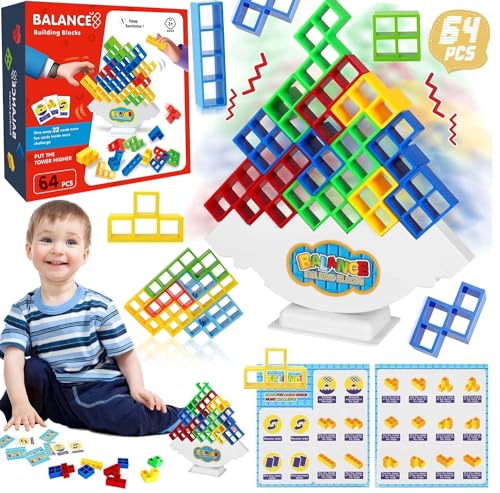 64 pezzi Tetra Tower, gioco Tetra Tower, gioco per adulti, gioco di equilibrio per bambini, gioco di equilibrio di Tetris, gioco impilabile, gioco di bilanciamento delle rane, per ragazzi e ragazze a