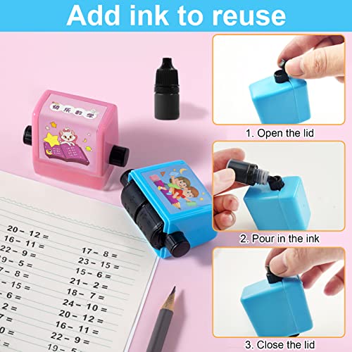 Riutilizzabile: il timbro didattico digitale a rullo è riutilizzabile con l'inchiostro. I bambini della scuola elementare scrivono una pagina al giorno per migliorare la velocità e la precisione dell'aritmetica orale. Carino e pratico, questo prodotto contiene due timbri didattici digitali e 1 flacone di inchiostro.