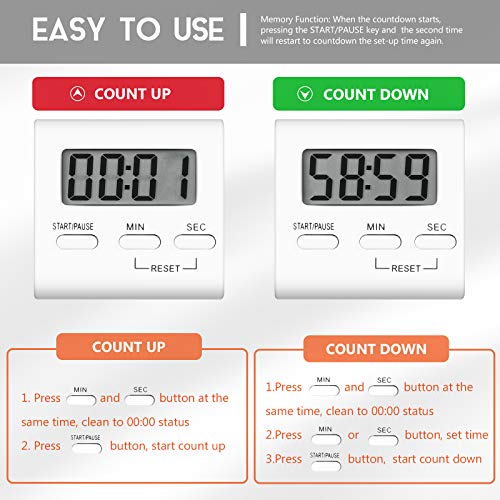 Timer di grandi cifre: con il display chiaro con ampio schermo LCD e numeri chiari, avrai solo bisogno di uno sguardo anche dall'altra parte della stanza per leggere facilmente il display, adatto per la visione offuscata o anziani