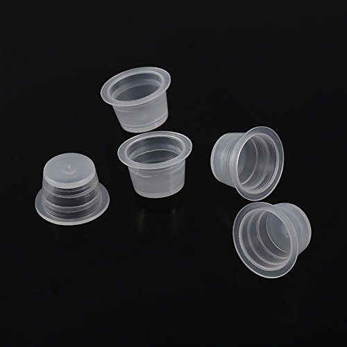 【IDEALE PER】 Il cappuccio per inchiostro del tatuaggio è perfetto per contenere il pigmento o l'inchiostro del tatuaggio.Questi cappucci di inchiostro bianco trasparente sono adatti per tatuatori professionisti o per uso domestico.