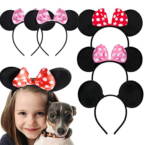 6 Pezzi Topolino Minnie Mouse Fascia,Orecchie da Topo con Cerchietto Nero,Orecchie da Topo in Nero per Bambini e Adulti,per Capelli Bambini Adulti Costume Carnevale Compleanno Cosplay Halloween