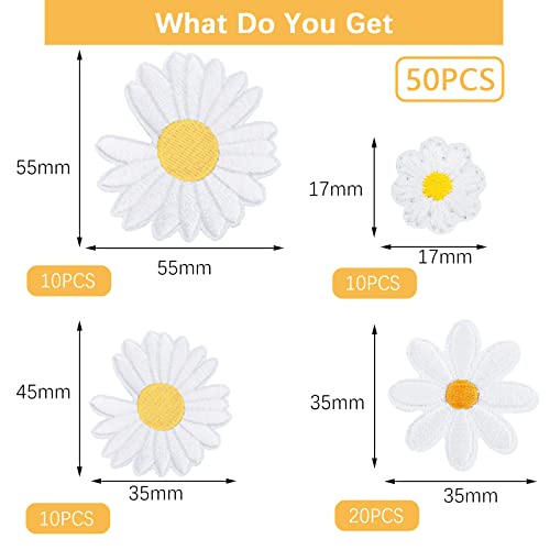 50 Pezzi Toppe Termoadesive Margherita Patch di Fiori per vestiti Abbigliamento Applique Patch Applicazioni Toppa Termoadesiva Decorativi Ricamo per Bambini Adulti Giacche Zaini Jeans Vestiti Borsa