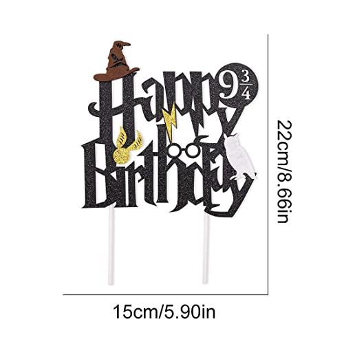 11 Pezzi Toppers Torta di Compleanno a Tema Mago, Set di Topper per Torta Cupcake Toppers con 11 Modelli: Gufo, Fulmine, Cravatta, Volto Umano, etc e Inserto per Torta per Feste Compleanno