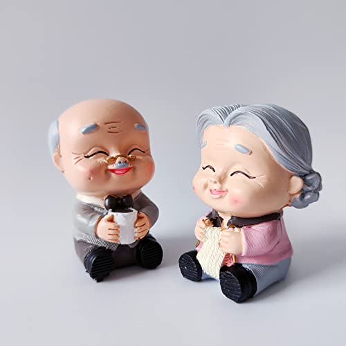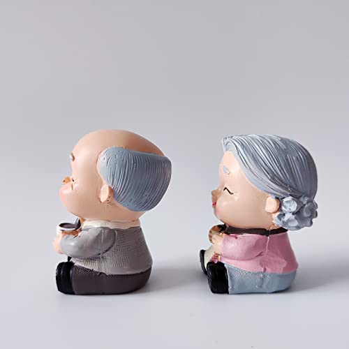 2 Pezzi di Toppers per Torta con Statua, Vecchie Coppie Figurine Cake Topper, per Anniversario Compleanno Decorazione Torta Nuziale Regalo