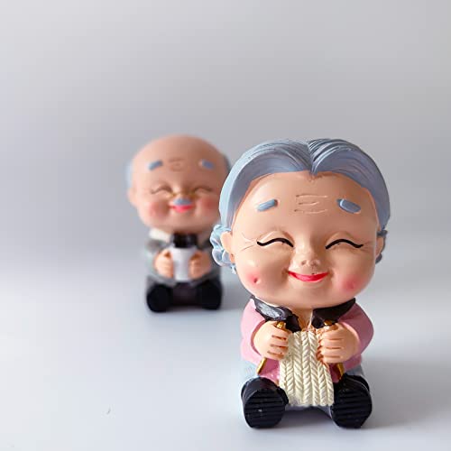 DESIGN UNICO: questo cake topper è composto da una vecchia signora e un vecchio. I due sedettero a gambe incrociate e sorrisero. Armonia tra vecchi mariti e mogli, il bel significato della vecchiaia.