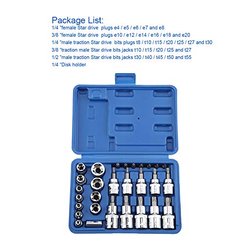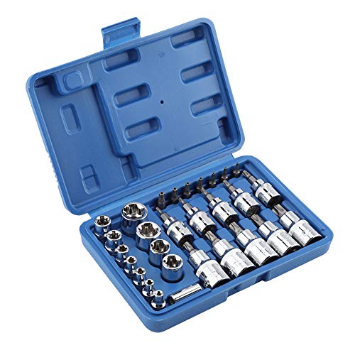 Set di 29 pezzi Torx Bit Star Socket Set di bussole a punta esagonale con maschio e femmina Torx e punte a bussola E & T