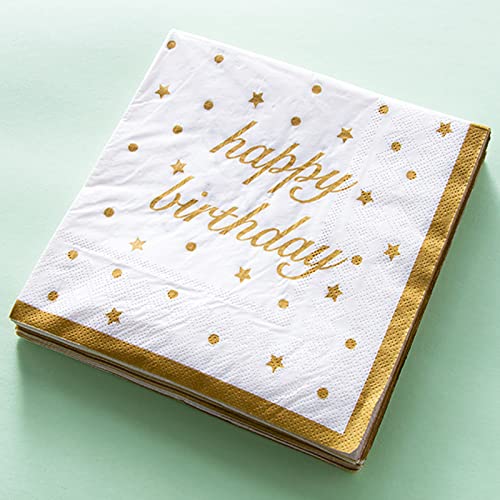 Design di buon compleanno: i tovaglioli sono oro e argento, con scritto Happy Birthday. Molto adatto per feste di compleanno, le decorazioni si completano a vicenda.