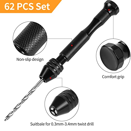 62 Pezzi Set di Trapani a Mano, Comius Sharp Set di Trapani a Morsa e Utensili Rotanti con 48 Pezzi di Trapano a Spirale e Trapano a Vernice da 0,3-1,2 mm per il Fai Da Te, La Lavorazione del Legno