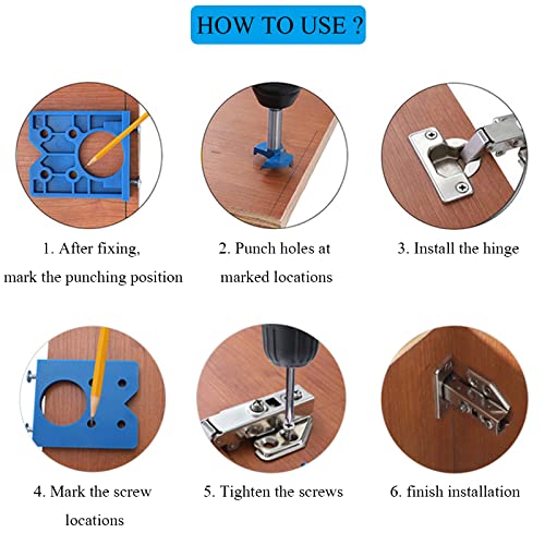 【Facile da usare】 Guida di perforazione del morsetto della cerniera nascosta per un rapido posizionamento del punto centrale della cerniera, con la maschera di perforazione della cerniera, puoi immergere facilmente e comodamente il foro della tazza nella porta dell'armadio o nella scrivania da solo. Adatto a professionisti e amatori.
