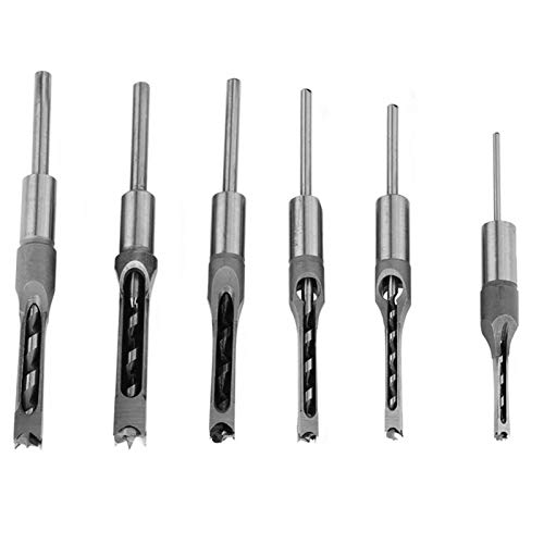 6 Pezzi Trapano a Foro Quadrato, Set Legno Quadrato Set di Punte Trapano Mortasa a Sezione Quadrata in Acciaio, HRC 48-50